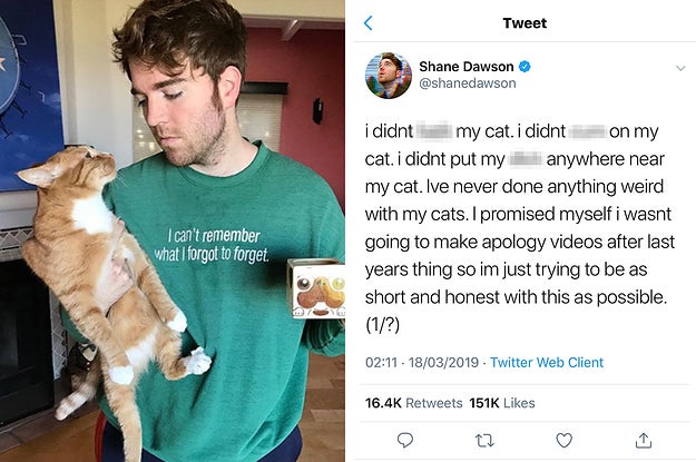 The YouTube star has defended himself after an old video emerged where he told a story about having sex with his cat.