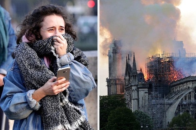 Thousands watched in horror as the beloved Notre Dame cathedral in Paris was engulfed in a massive blaze on Monday. These pictures show the response of those who witnessed the fire firsthand.