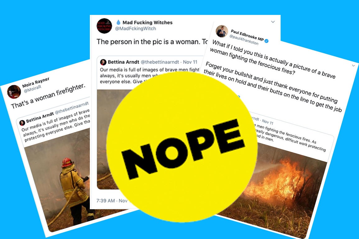 "That's a woman firefighter," said one tweet dunking on a men's rights activist. One problem: it wasn't.